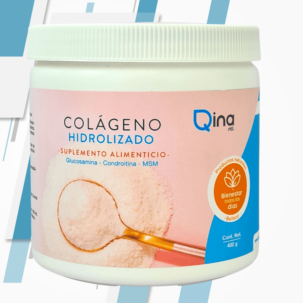 COLÁGENO HIDROLIZADO-GLUCOSAMINA-CONDROTINA-MSM500g SABOR NATURAL QINA