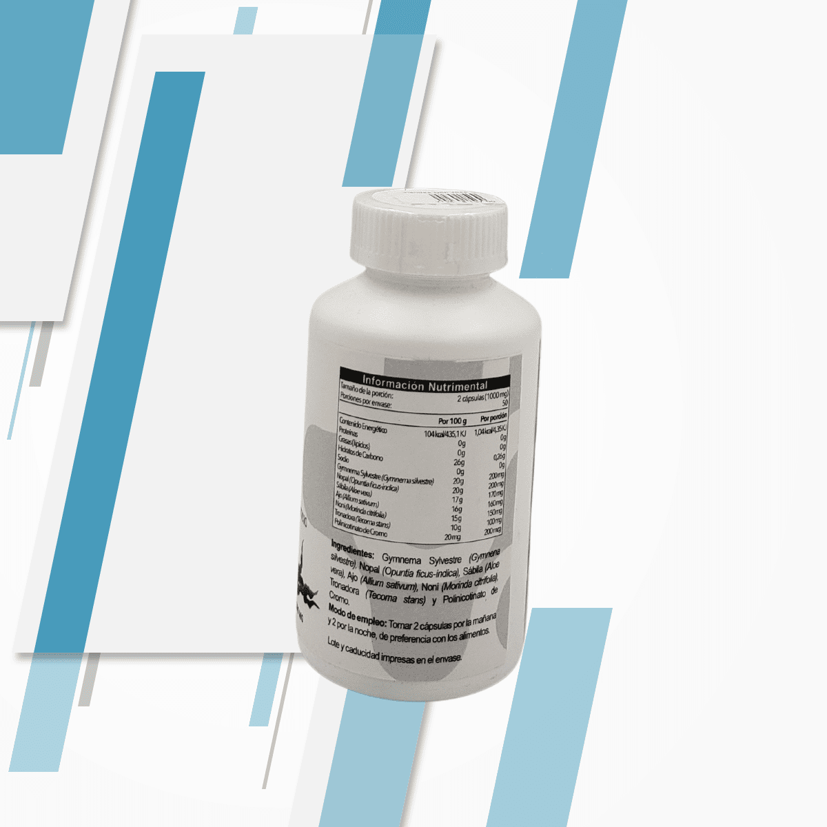 Ingredientes: Gymnema Sylvestre, Nopal, Sábila, Ajo, Noni, Tronadora y Polinicotinato de cromo.